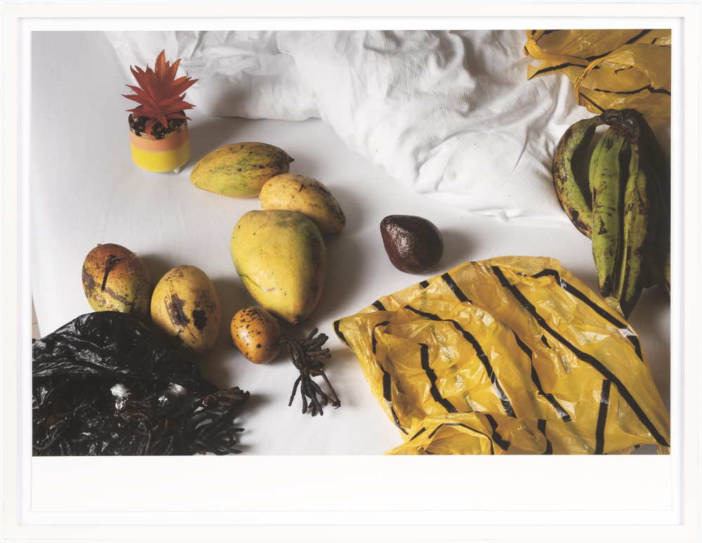 L’identité brésilienne est centrale dans le travail de l’artiste Livia Melzi, elle y interroge de manière critique les images et l’écriture de l’histoire de son pays. Dans la photographie faussement appelée Autoportrait, 2022, elle fait poser Gliceria Tupinamba, artiste et activiste de la tribu du peuple Tupi, avec une cape de plumes confectionnée par ses soins. L’artiste fait ainsi converger deux identités, tribale et moderne.