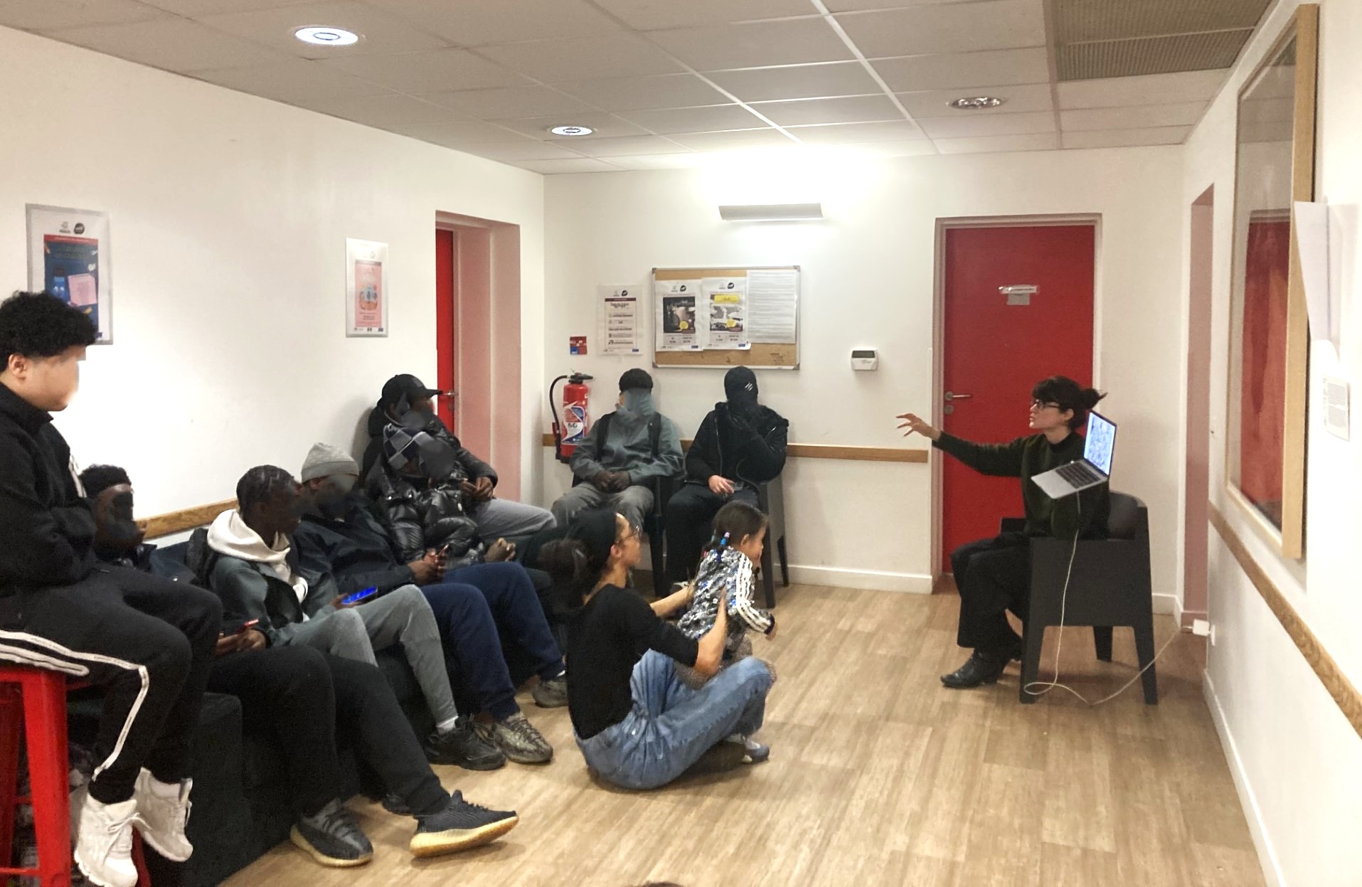 La Fédération de Paris de La Ligue de l'enseignement, association d'éducation populaire, a contacté le Fonds d'art contemporain pour développer un projet dans deux des centres dont elle a la gestion dans le 19e arrondissement. Les deux centres sont à proximité, dans les quartiers Place des Fêtes et Danube, mais les usager.e.s des deux lieux, en particulier les adolescent.e.s ne se mélangent pas forcément.