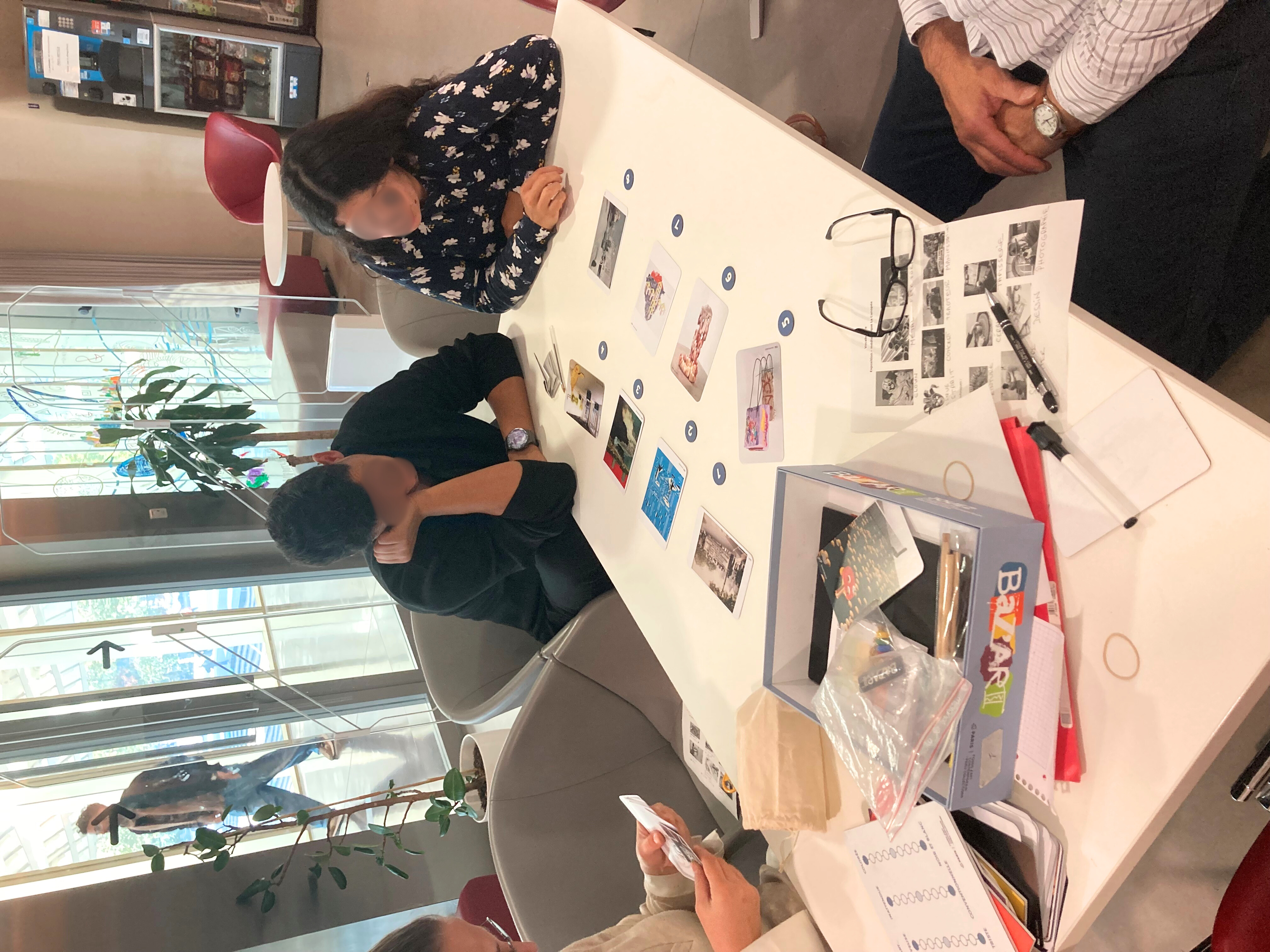 Le mardi matin, des bénévoles de l'association BAAM (Bureau d'Accueil et d'Accompagnement des Migrant.e.s) proposent des cours de langue pour différents niveaux. Un petit groupe a débattu autour des œuvres avec la chargée de médiation et jouer au jeu Baz'Art. L’œuvre de Suzanne Husky a beaucoup plus à ce groupe pour son message politique.