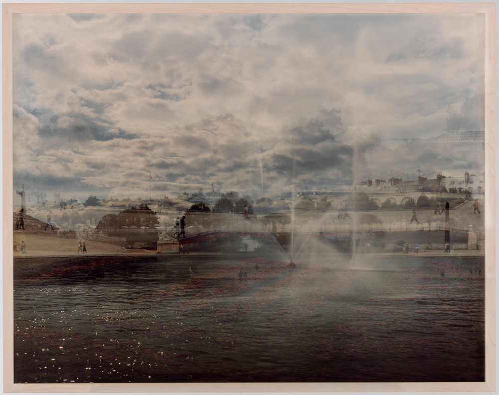 Les paysages de Sally Apfelbaum résultent d’une quadruple exposition, créant un panorama non déployé mais sur-imprimé. Cette superposition de vues capte un maximum d’informations visuelles, entre réalisme intense et frontière de l’abstraction.